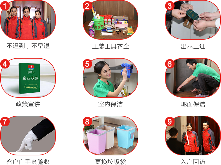 1.窗明幾凈:精準服務達到后室內干凈徹底簡約明亮 2.干掉凈:售后服務搞定后并沒有油垢、塵灰、不溶物 3.井然平穩:東西歸類雜亂,整體風格打掃衛生清潔